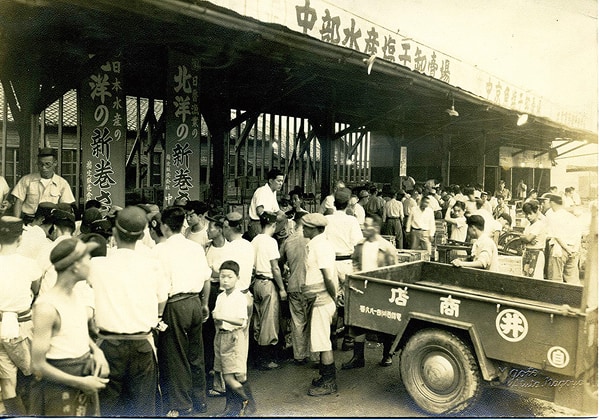 昭和21年に名古屋市中村区で創業し、今年80周年を迎えます。昭和23年に名古屋市中央卸売市場が開設されると、ここで飼料や魚粉の製造販売をスタートしました。昭和26年に本社を市場内に移転し、現在は生鮮・塩干・冷凍・加工食品などの水産卸売業並びに冷蔵倉庫事業を主な事業として展開しています。名古屋市中央卸売市場本場には現在3つの荷受があり、中部水産はその中の一つです。市場では、荷受と言われる卸売会社が産地から市場に集まった水産物などを受け取って競りを行い、仲買と言われる仲卸会社に販売します。その後、仲卸から小売業者などに販売されるのが魚の主な流通ルートとなっています。